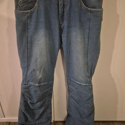 Richard double layer kevlarfarkut, koko 38 (38" vyötärö, 32" lahje). Väri tumman sininen, kulutetun näköinen denim. Mallissa on viisitaskuinen perusleikkaus ja vyötäröllä vyölenkit.