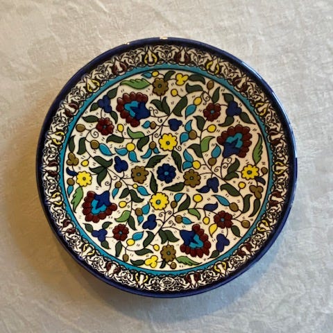 Koristelaatta seinälle. Nainen penkillä.