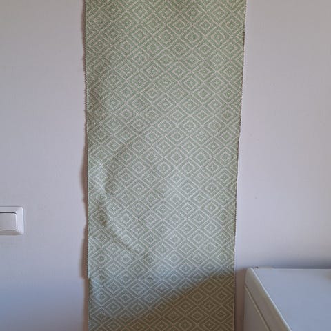 Vihreä kaitaliina. Koko 32cm x 105cm. Ehjä ja siistikuntoinen.