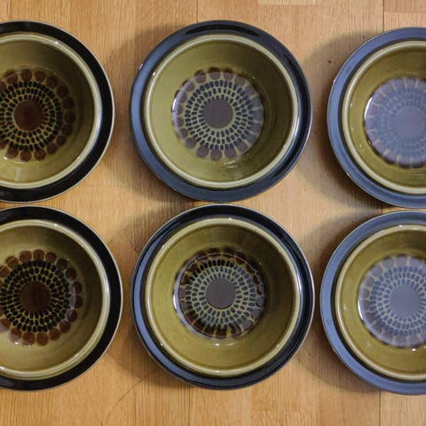 Kiiltävät hyväkuntoiset Arabia Kosmos pienet lautaset 6 kpl Halkaisija 16 cm. Jokunen nypy lasitteen alla. Nouto / lähetys ostajan lukuun.