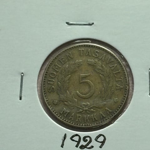 Suomen Tasavalta 5 markkaa kolikko 1928