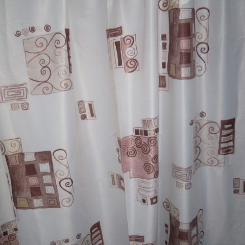 Ei ole merkkiä näissä, mutta arvioisin, että jotain 1960/70-lukua ovat. Eläväinen kudos, puuvillalta tuntuu. Kännykän kamera valehtelee tummemman vihreän sinisemmäksi kuin se oikeasti on. Siistit kankaat, hulpiloreunoissa pieniä kulumia, ks. lähikuva. Kaksi kangasta, kummankin koko n. 115 × 173 cm.