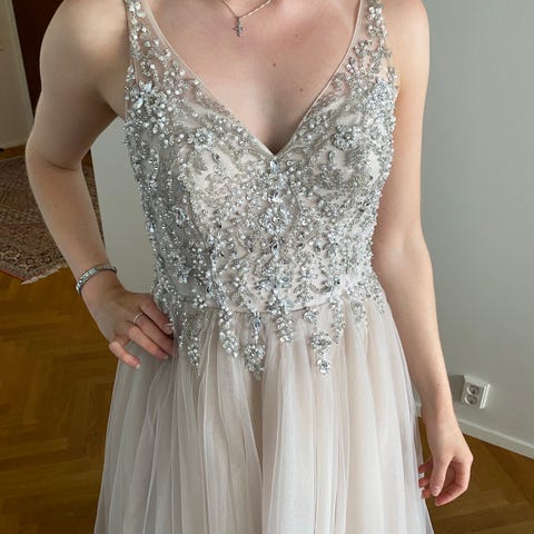 Vip juhlapuvuista ostettu kaunis retrohenkinen, ranskalainen Demetrisius-mekko. Selkää avattu vähän lisää ompelijan toimesta. Tanssija 167cm. Yhdet tanssit tanssittu. Sijaitsee Helsingin punavuoressa.Ovh 495€