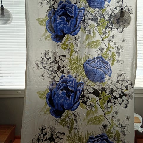 Vallilan verhot, joita ei ole lyhennetty eli 250cm pitkät. Siististi pidetyt. Voin postittaa tai voi noutaa.
