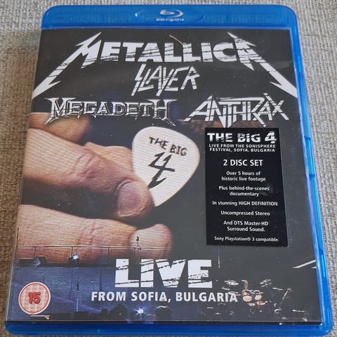 Metallica Slayer Megadeth Anthrax The Big 4 Live From Sofia Bulgaria -konserttitallenne DVD-muodossa. Julkaisu sisältää 2 levyjä, joilla on live-esityksiä Sofiassa, Bulgariassa järjestetystä konsertista. Kannessa ja levyissä on yhtyeiden logot sekä kappalelistat takakannessa. Pahvikotelo. Formaatti on DVD, ikäraja 15. Sopii DVD-soittimille, jotka tukevat julkaisun aluekoodausta ja formaattia.