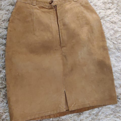 Vero Moda -hame mokkapintaisella ilmeellä. Kaunis lämmin ruskea sävy, takana vetoketju rengasvetimellä ja edessä taskut. Helppo yhdistää neuleisiin, paitoihin ja saappaisiin. Koko S. Hyvä käytetty kunto.