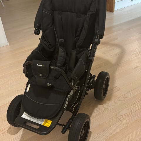 Emmaljungan rattaat joissa istuinosan saa käännettyä helposti. Kuomussa reikä sisäpuolella. Nappi myös ironnut keskikohdalta . Toisen etupyörän lukitus rikki eli ei saa lukittua suoraksi. Pyöriä myydään erikseen. Työntöaisa jo rispaantunut. Näihin myös myydään erikseen suojia. Työntöaisan toinen säädin myös ironnut ja hävinnyt jolloin aisaa ei saa käännettyä mutta säädöt pituussuunnassa toimii normaalisti.