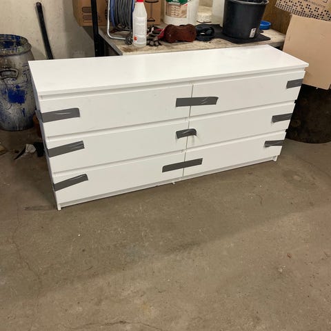 Lipasto on kunnoltaan kohtalainen ja pinnoissa on kuluman jälkeä. Osa vetolaatikoista liukuu hyvin, osa huonommin.