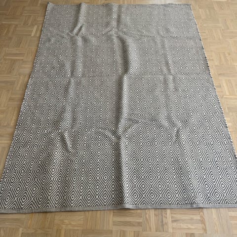 Matto on käytetty, ja reunoissa on kulumaa, mutta muuten se on siisti ja miellyttävä käyttää.