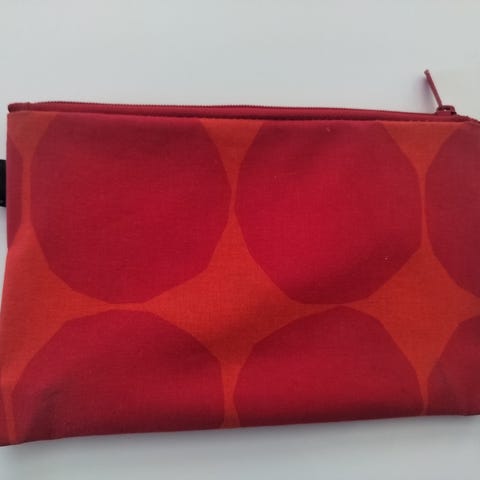 Täysin ehkä, käyttämätön ja aito Marimekon meikkipussi. Se on myös aopivan kokoinen vaikka penaaliksi. Vain käteinen käy ja sopii nähdä vaikka ostareissa julkistenyhteyksien päässä.