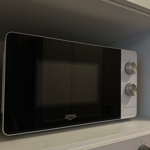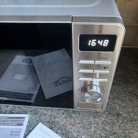 UPO mikroaaltouuni teräskuorella. Vapaasti sijoitettava malli, jossa on etupaneelissa digitaalinen näyttö, painikkeet ja kiertonuppi ohjelmien ja ajan säätöön. Sisällä lasinen pyörivä lautanen. Soveltuu ruoan lämmittämiseen ja sulattamiseen kotikäytössä. Ulkoväri teräs, sisätila harmaa emaloitu pinta.