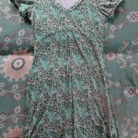 H&M naisten kesämekko, koko S. Väriltään musta, jossa vaaleat pilkut. Materiaaleina polyesteri ja elastaani. Mekossa on lyhyet hihat ja täyspitkä helma. Sopii arki- ja vapaa-ajan käyttöön.