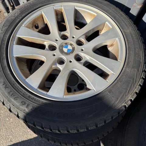 Bmw tarvikevanteet 5x120. E39 alta, mutta istuu myös esim e36,e46 jne. Uudet 215/55-16 kumit 4620 paistolla. Ei tärrää, pientä lakkavikaa jossain kohdissa mutta suht asialliset niinkuin kuvista näkee. Et luvut ja leveydet voin tarkastaa kiinnostuneille.