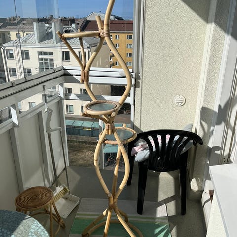 Myydään rottinkinen kukkapöytä erinomaisessa kunnossa.