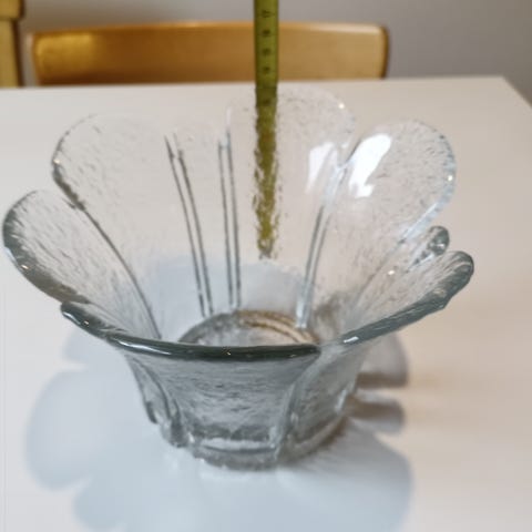 Kirkas paksu lasi, suorakulmainen ja ontto tiilimäinen muoto. Sopii esimerkiksi koriste-esineeksi tai sisustuselementiksi. Valmistusmerkintä Made in Germany.