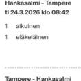 Return tickets from Kuopio to Helsinki and from Helsinki to Kuopio