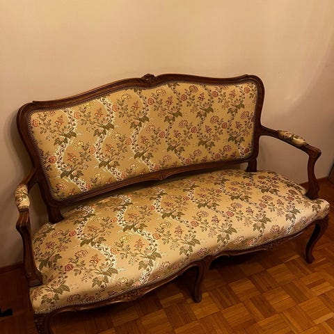 Minulla myynnissä hieman samantyyppinen antiikkisohva sekä muita vanhoja ja uusia huonekaluja.