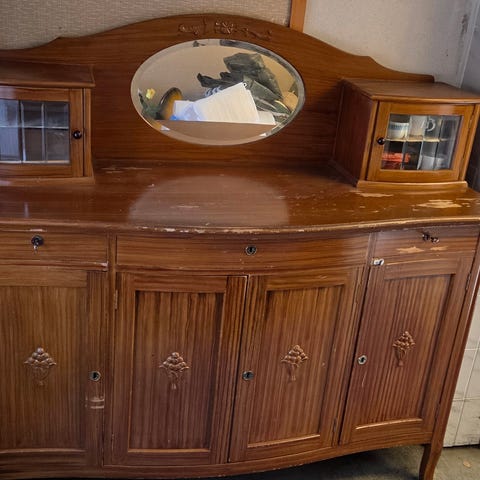 Puinen senkki. Toisen puolen jalka ja lista irti, tallessa mutta vaatii korjausta. Korkeus 115 cm, leveys 112, cm syvyys 55 cm. Säilytetty ulkovarastossa.