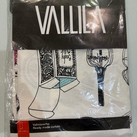 Vallilan verho, avaamaton paketti. Kunnon napakkaa kangasta, ei ohut läpikuultava