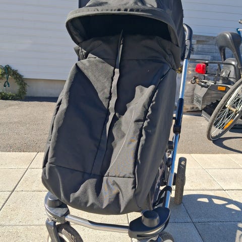 Mukana istuinosa, vaunukoppa sekä jalkapeite. Lisäksi hyttysverkko ja sadesuoja, jotka ei kuitenkaan alkuperäisiä Emmaljungan.