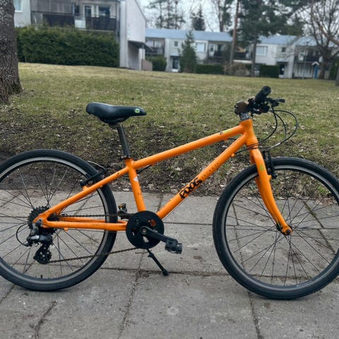 Erittäin hyvässä kunnossa oleva ja vähän ajettu ja laadukas alumiinirunkoinen lasten polkupyörä mallia Frog 73. Väri on kirkkaan punainen, ja rengaskoko 26". Mukana lisävarusteena hankittavat lokasuojat sekä jalkatuki. Heti valmis ajoon.