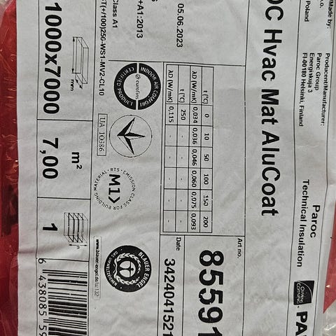 Paroc Hvac Mat Alucoat 1000x7000mm paksuus 50mm. Avaamaton paketti.