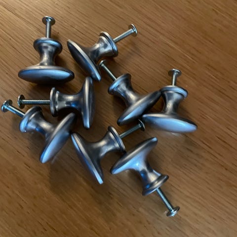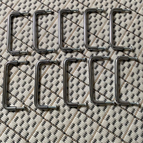 Myydään kiiltäviä metallisia kaapin kahvoja 8 kpl. Sijainti Salossa. Myydään kokonaisuutena.