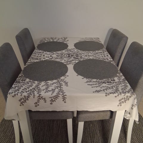 Ovaalin mallinen pöytä 180×80cm korkeus 75cm+ 6kpl tuolia, yhdessä päälisessä repeämä. Ruokailuryhmä 50 euroa/ tarjous. Nouto, käteismaksu, eläimetön, Kemissä.
