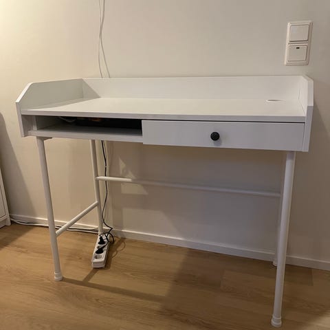 Erittäin hyväkuntoinen valkoinen Ikean Relatera työpöytä