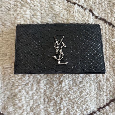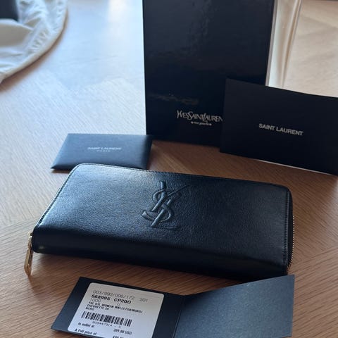 Aito YSL nahkainen naisten lompakko musta. Lompakko on valmistettu mustasta nahasta, jossa on kohokuvioitu tikattu pinta ja edessä metallinen YSL-logo. Lompakossa on vetoketjullinen osa sekä nepparikiinnitys. Sisäpuolella on useita korttipaikkoja, setelitasku ja erillisiä lokeroita kuiteille tai korteille. Väri: musta. Materiaali: nahka. Soveltuu naisten käyttöön arjen maksuvälineiden ja korttien säilyttämiseen.