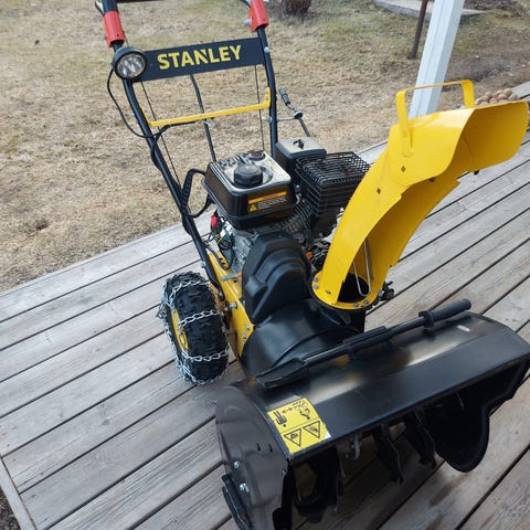 Partner PSB270 lumilinko. Polttomoottorikäyttöinen kaksivaiheinen lumilinko, jossa on kumipyörät ja mekaaniset hallintavivut työntöaisassa. Etuosassa on keltainen teräruuvi lumen keräämiseen ja heittotorvi lumen poistoon. Soveltuu pihan ja kulkuväylien lumenpoistoon kotitalouskäytössä.