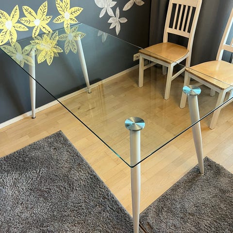 Kaunis ja tukeva lasinen ruokapöytä (jatkettava)