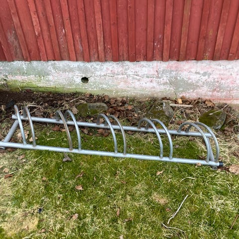 Viidelle pyörälle teline, pientä pintaruostetta, mutta muuten ehjä, tän voi vaikka maalata mieleisekseen.Vain nouto Espoosta
