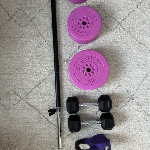 Gymstick levytanko ja levypainot sekä kahvakuula ja käsipainot