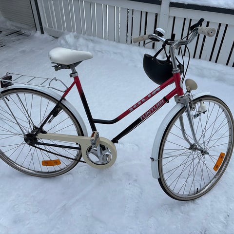 Helkama naisten kaupunkipyörä, jossa 53 cm runkokoko ja 28" (700c) kiekot.