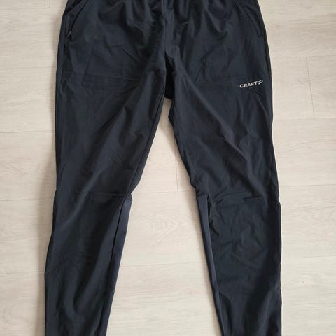 Juoksu-/hiihtohousut. Etuosa softshell, takaosa joustavaa trikoota. Pieni avaintasku vyötäröllä, henkselipaikat (henkselit puuttuu). Lahkeissa vetoketjut ja lahkeensuissa silikonireunukset. Vyötäröllä leveä kuminauha sekä edessä narukiristys. Erittäin siistit.