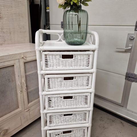 Myydään kuvanmukainen muovirottinkinen lipasto, korkeus 75cm, leveys 68cm ja syvyys 31cm. Säilytetty huvimajassa.