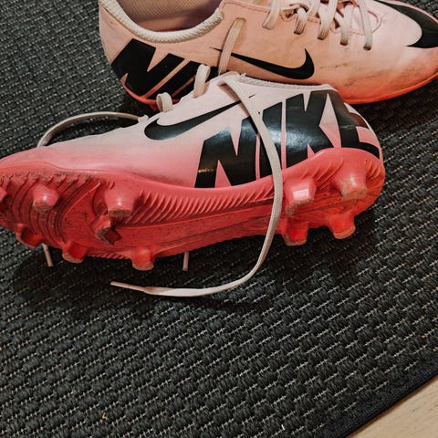 Nike Phantom jalkapallokengät nappulapohjalla. Sininen päällinen, vaalea Nike-logo sivuilla ja Phantom-teksti kannassa. Nappulapohja on suunniteltu luonnonnurmelle tai keinonurmelle. Nauhakiinnitys ja pehmustettu varsi. Soveltuvat jalkapallon pelaamiseen ulkokentillä.