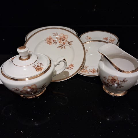 Kannussa näkyy hieman ajan patina, sokerikko ja kermakko uutta vastaavat.