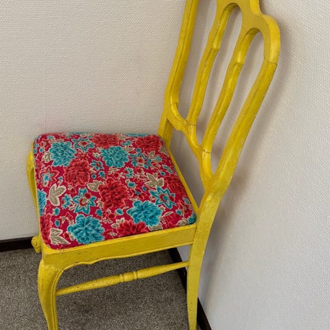 Puinen ruokapöydän antiikkituoli vaaleanbeigeä sävyä. Tuolissa on koristekaiverrettu selkänoja ja sorvattuja pystypinnoja selkänojan alaosassa. Istuinosassa ja jaloissa on suoraviivainen, perinteinen muotoilu. Sopii ruokapöydän tuoliksi tai lisäistuimeksi esimerkiksi keittiöön tai olohuoneeseen.