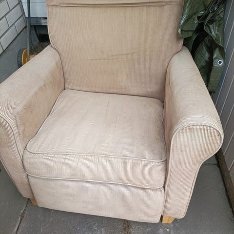 Ikäihmiselle sopivat nojatulit joissa kallistuksensäätö ja joista helppo nousta. Niskatuen korkeutta helppo nostaa ja laskea. Kankaat ja puuosat ehjät. Puisissa käsinojissa kulumaa mustassa maalipinnassa. Vain nouto Hgin Pakilasta. Annetaan ilmaiseksi ensimmäiselle noutajalle.