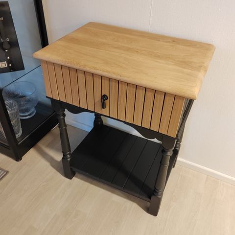 Kaksi mustaa puista pikkupöytää. Hyvä kuntoiset, ei nitku, pientä kulumaa pinnassa.