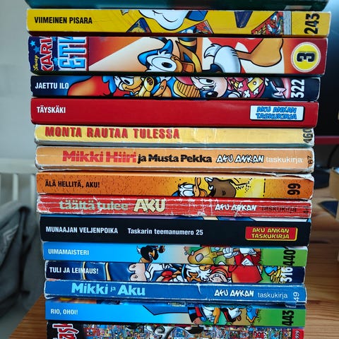 Pakettiin kuuluu useita eri Aku Ankka -sarjakuvia, mukana mm. Super-sarjan kirjoja ja Jumbo 9 -albumi. Sarjakuvat ovat pehmeäkantisia kirjoja, joissa on värilliset kuvitukset. Sopivat luettavaksi ja kokoelmaan lisättäväksi Aku Ankka -sarjakuvista kiinnostuneille.