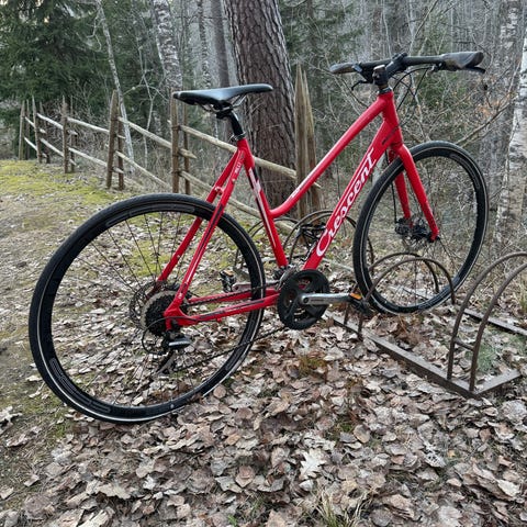 White sc hybridi myyntiin. Renkaina tällä hetkellä kapeat maantie kumit, rullaa kyllä tosi hyvin. Muuten peruspyörä.