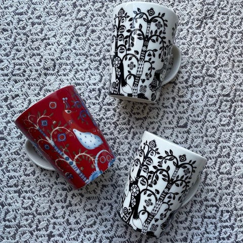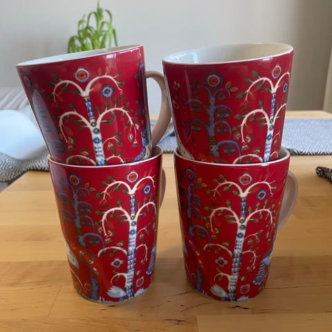 Myydään 2kpl Iittala Taika mukit punaisella kuosilla. Koko 4dl.