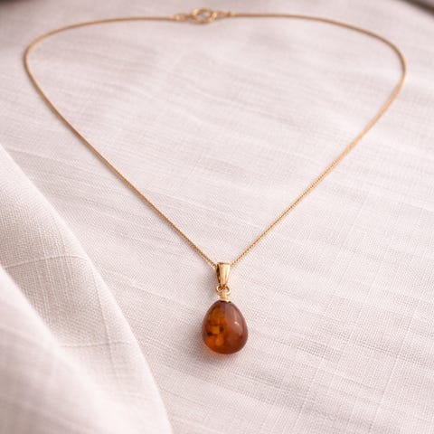 14K kultaketju meripihka riipuksella, ketjun pituus 43cm.