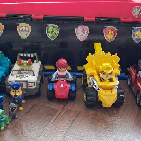 Ryhmä Hau leikkiauto, suuri rekka-ajoneuvo, joka avautuu leikkikeskukseksi. Rekkakokonaisuus sisältää useita avattavia luukkuja ja ramppiosia, joiden kautta pienemmät ajoneuvot voidaan ajaa sisään ja ulos. Mukana on Ryhmä Hau -hahmoja sekä heidän ajoneuvojaan, jotka sopivat leikkeihin rekan päällä ja sisällä.
