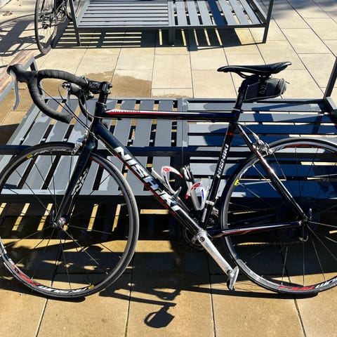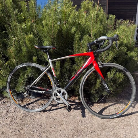 Alkuperäisestä vaihdetut varusteet: Kumit GP5000, etuvanne Shimano RS, satula Terry Ateria Fly. Polkimet Shimano SPD-SL.