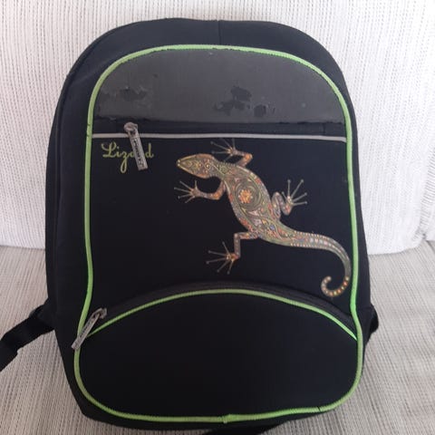 Monday Hiking -merkkinen musta reppu kaupunki- tai retkikäyttöön. Made in Korea. Sisätasku läppärille, 2 etutaskua. Mustassa pinnassa vähäistä kulumaa. Yleisilme normaalia käytön jälkeä. Yksi vaaleanpunainen nahkarenksu vetoketjusta puuttuu. Korkeus noin 48 cm