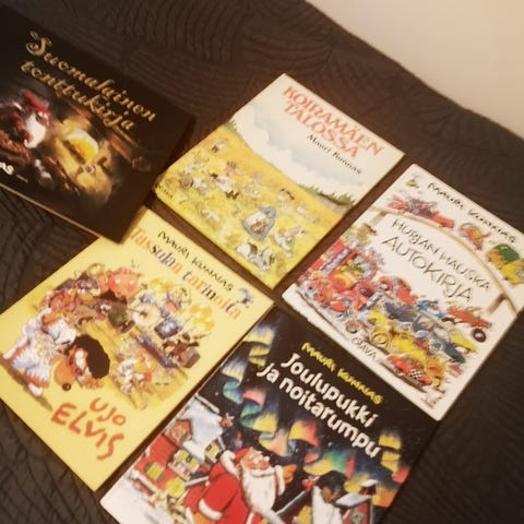 Mauri Kunnas lastenkirjat kirjapaketti. Pakettiin kuuluu useita kuvakirjoja, mm. teoksia kuten Koiramäen talossa, Koirien Kalevala, Numerot, Artturin ritari sekä Hullunkurinen lintukirja. Kirjat ovat suomenkielisiä ja sopivat lapsille luettavaksi tai ääneen luettaviksi. Kirjoissa on värikäs kuvitus ja kovakantinen sidonta mallista riippuen.